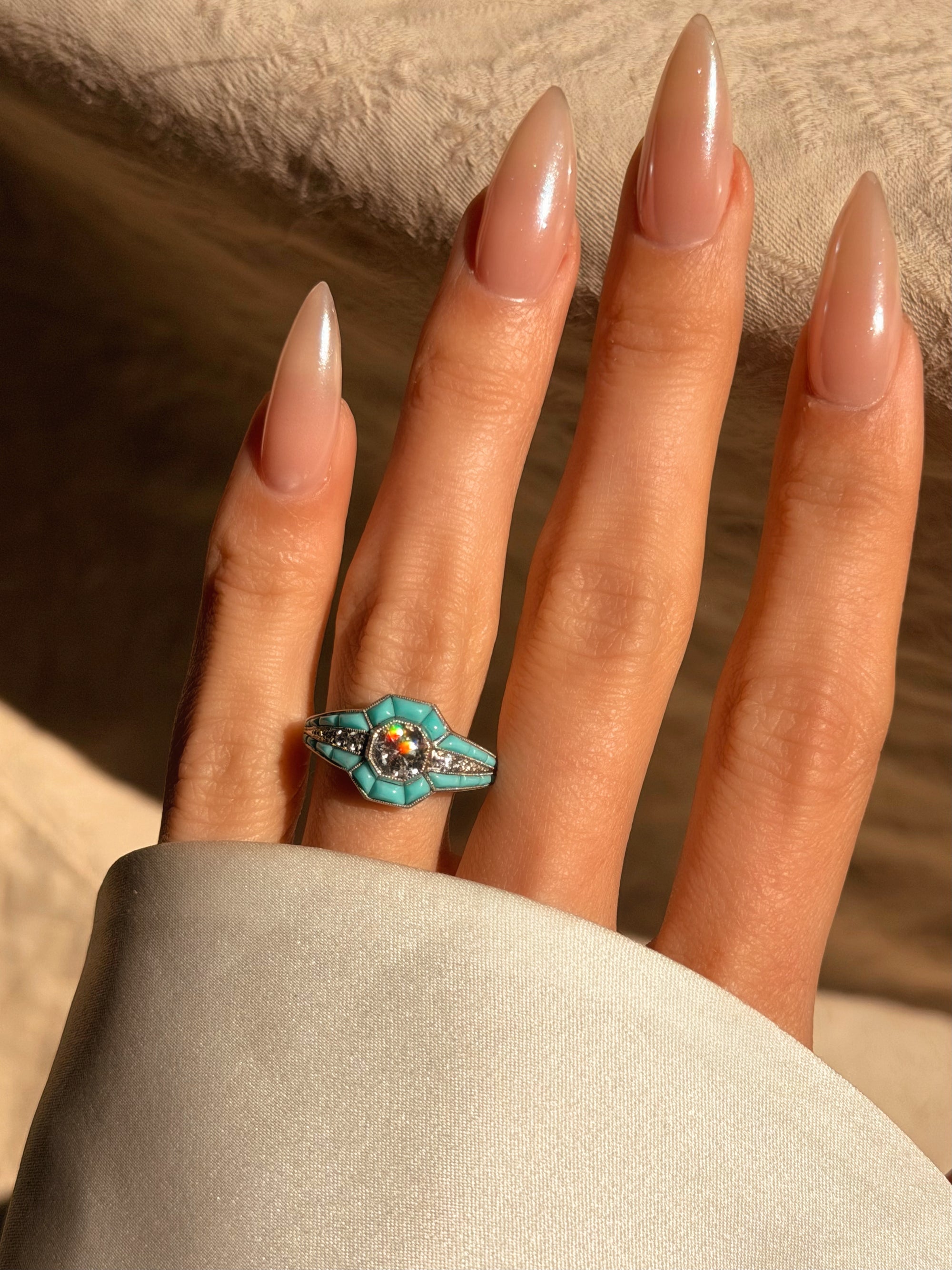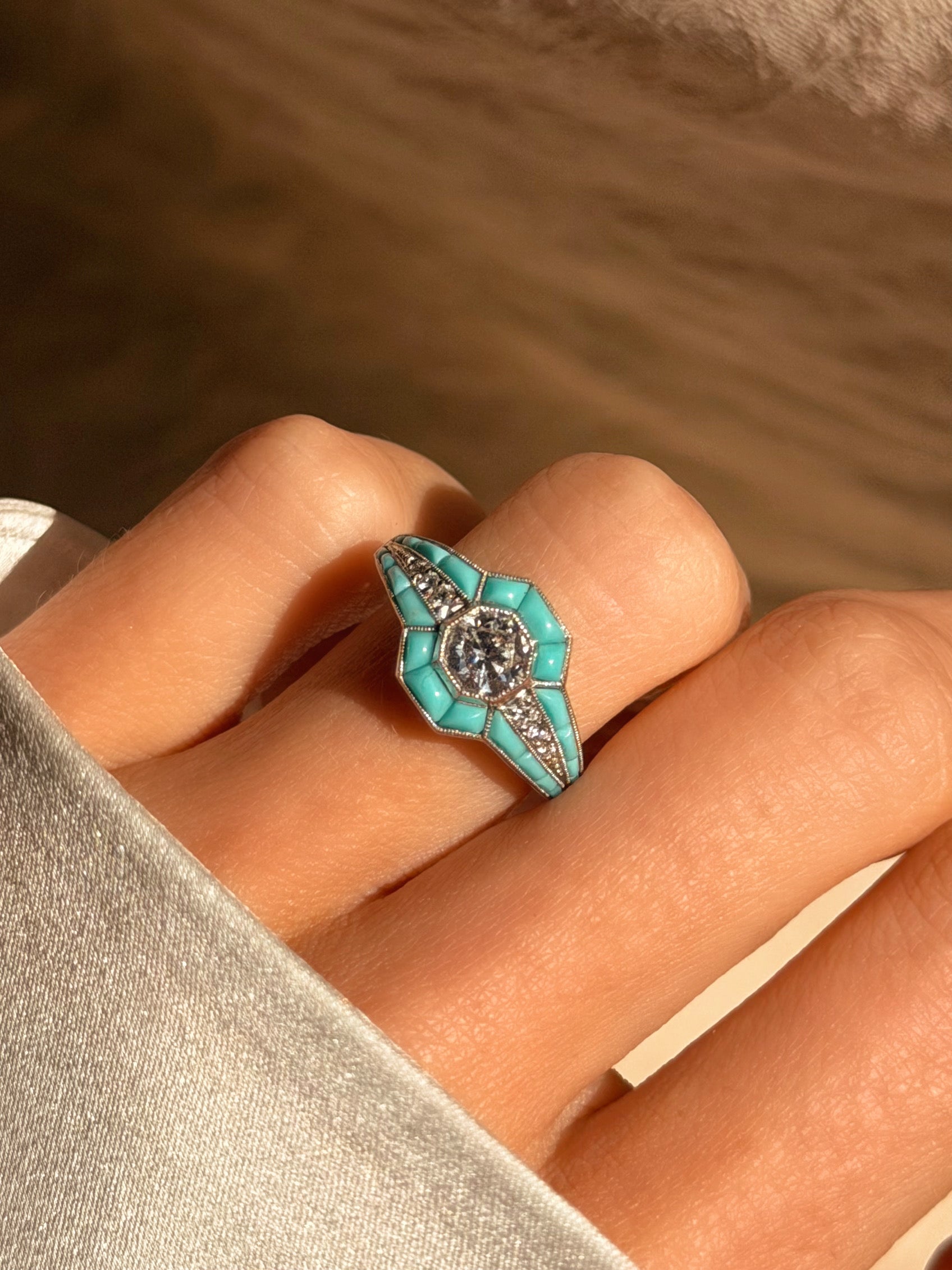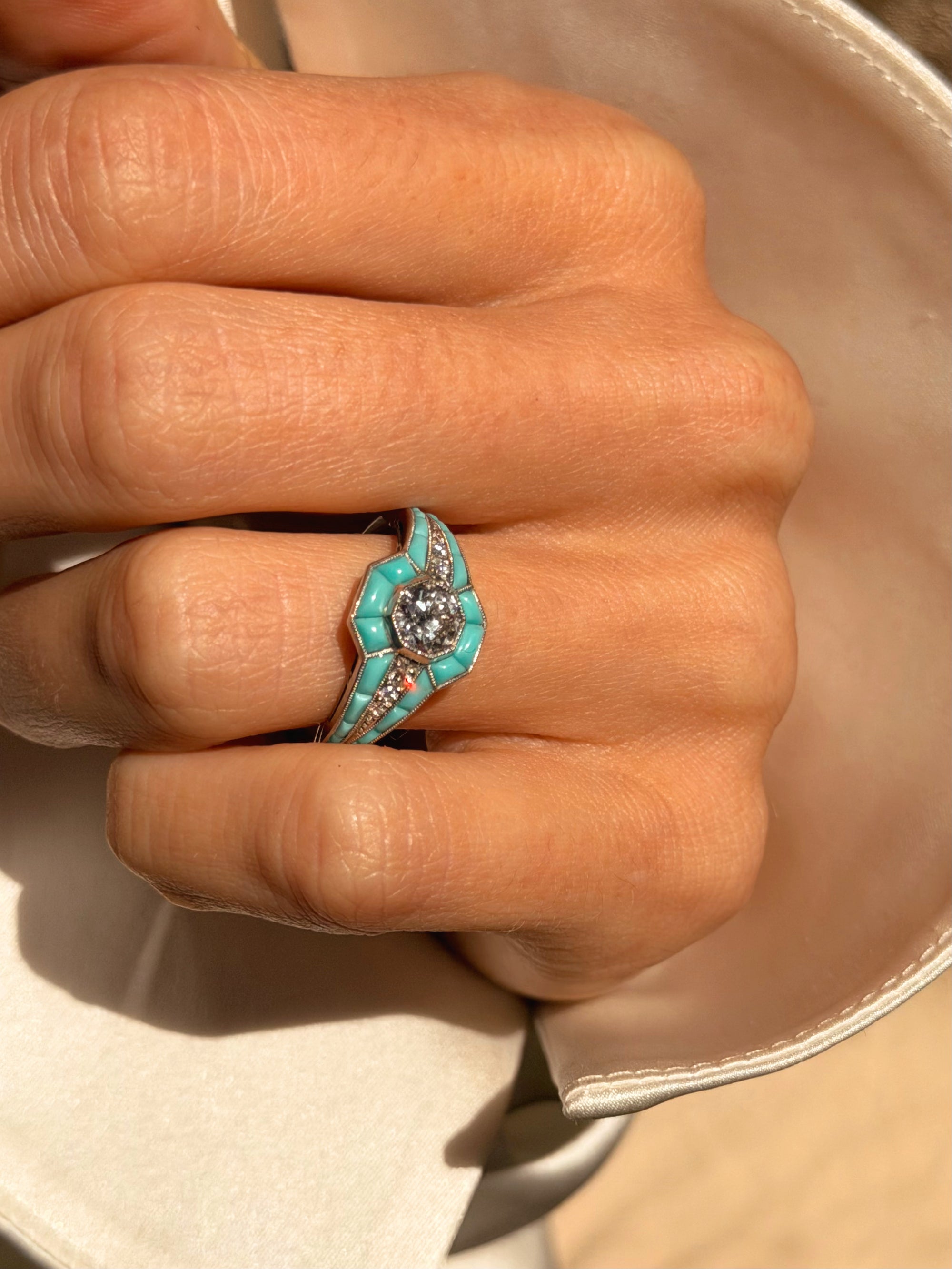 AND THERE IT WAS, ALL THE PEACE I HAD EVER SOUGHT IN ONE DEEP BREATH // VINTAGE CALIBRE TURQUOISE DIAMOND RING