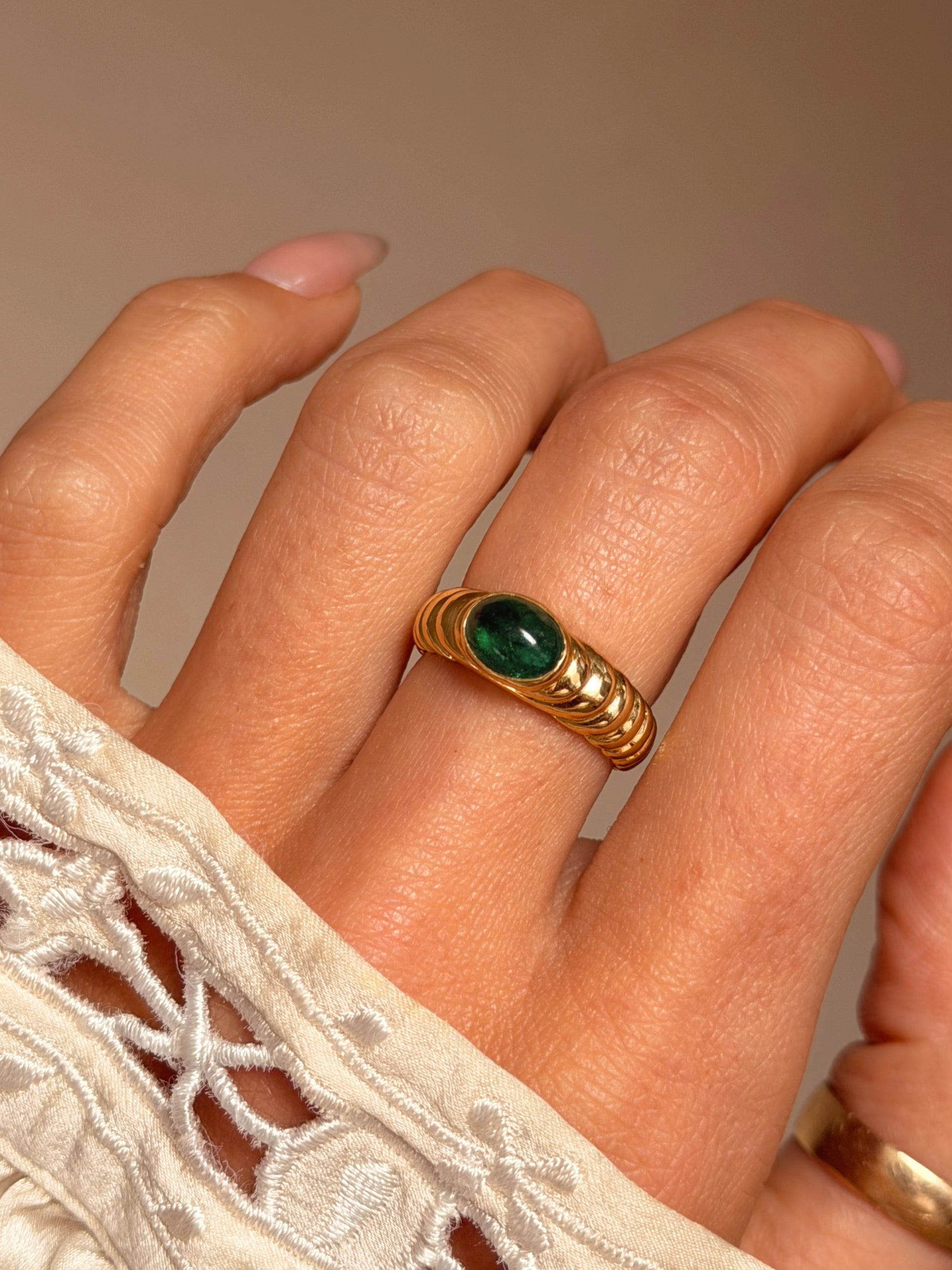 CHASE ME UP THE HILL AND KISS ME THERE // VINTAGE EMERALD CABOCHON RING