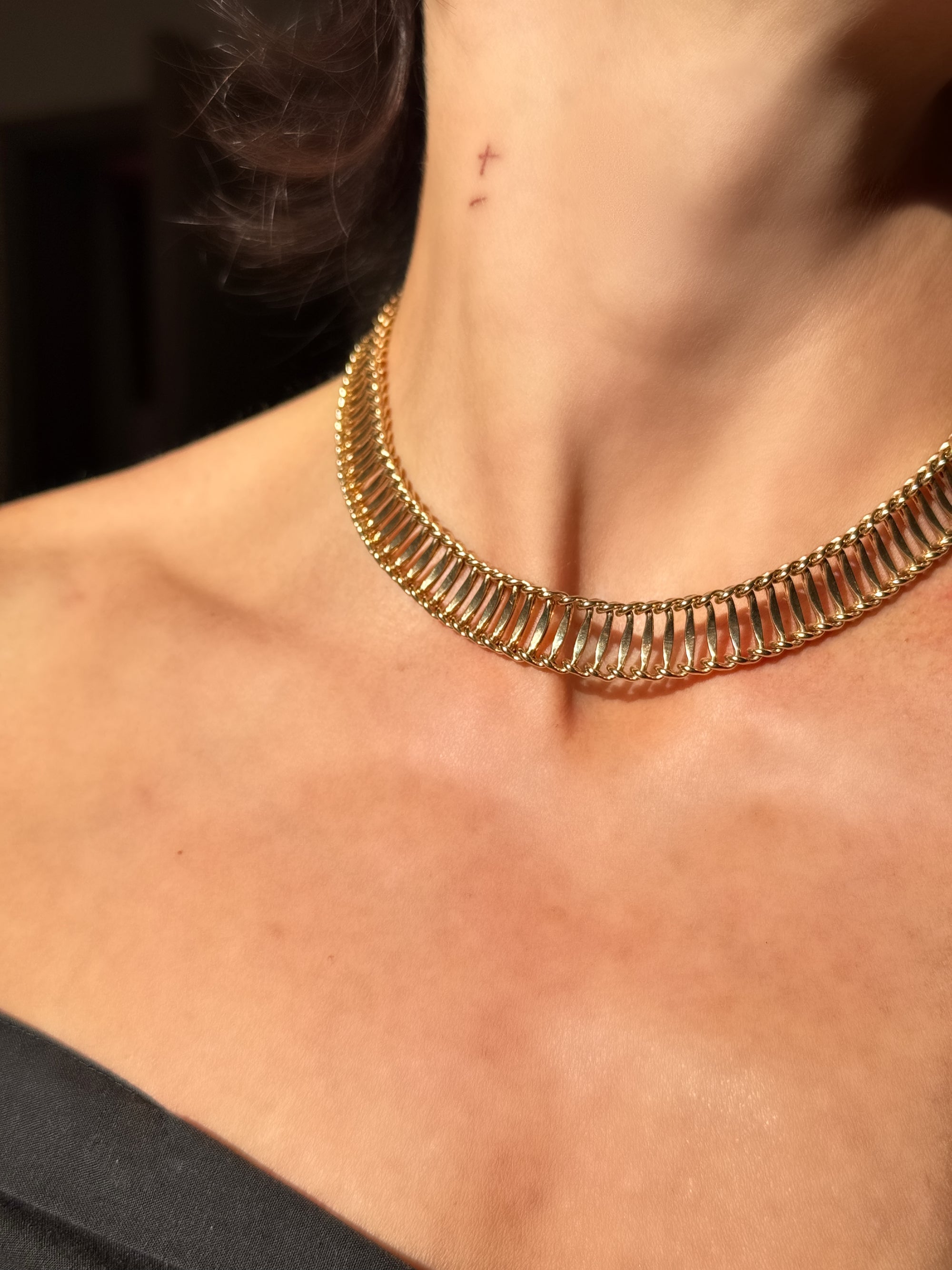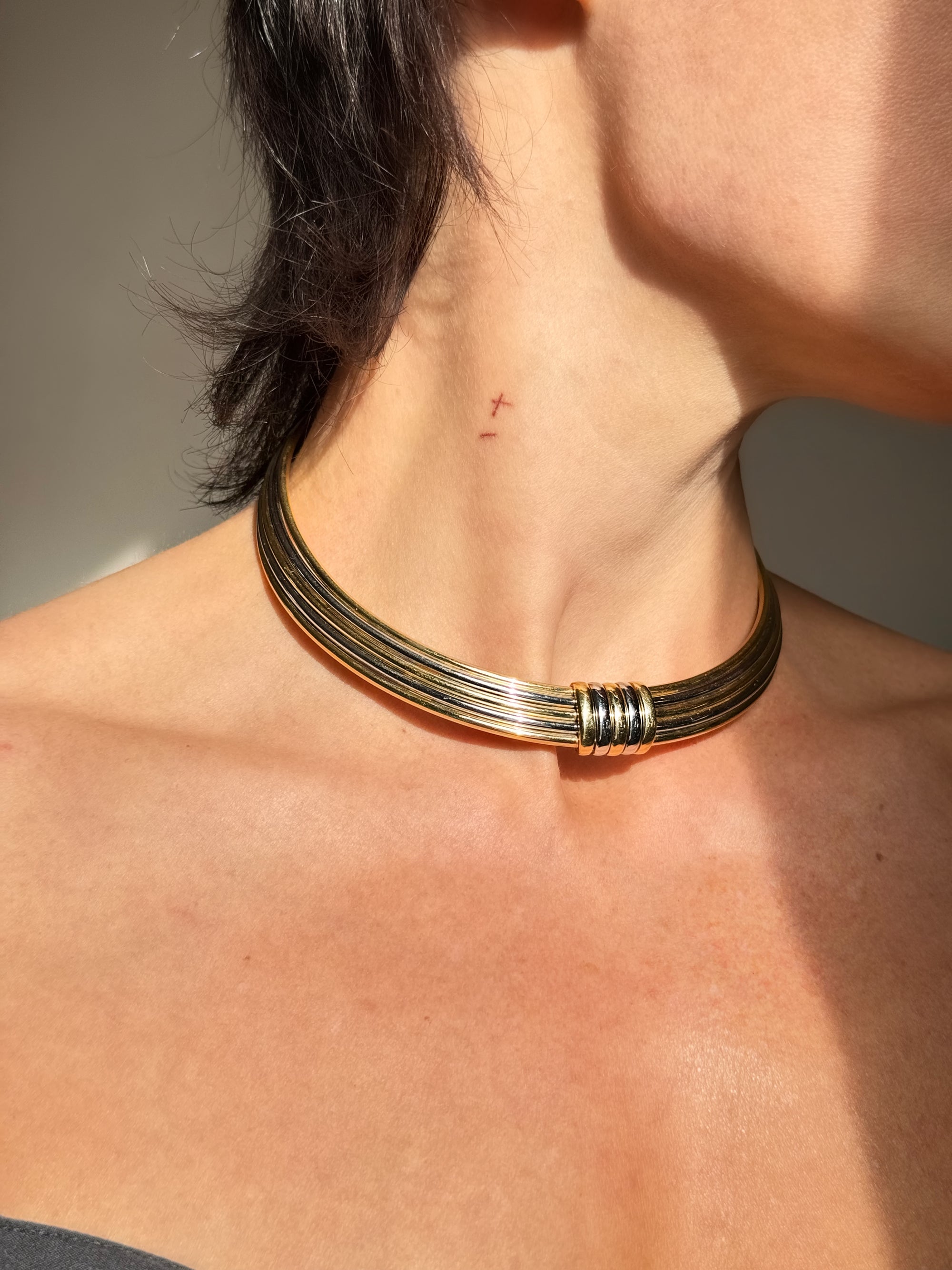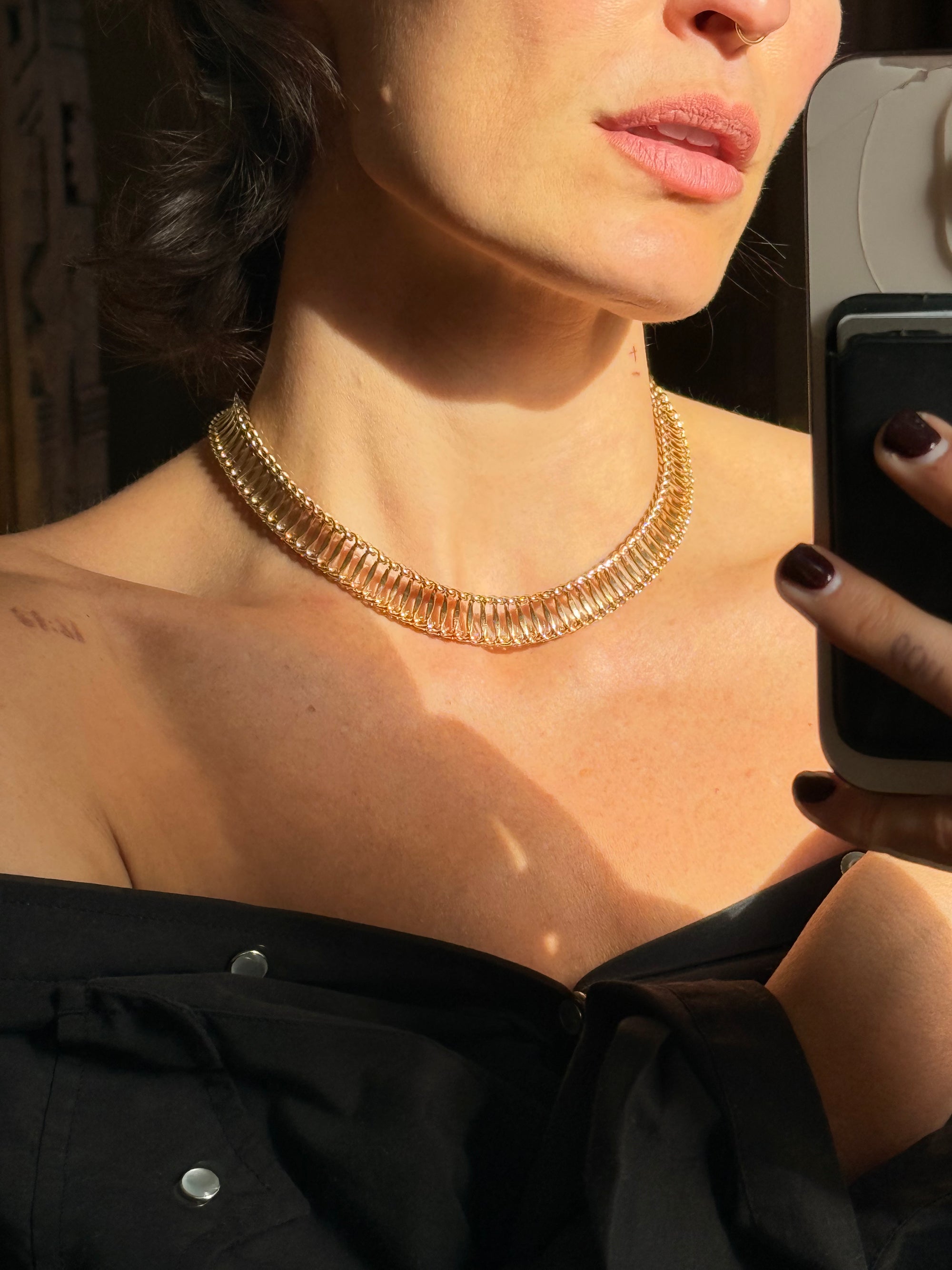 AT THE COPA, COPACABANA // 1970’s GOLD TORQUE COLLAR WITH FLAMINGO