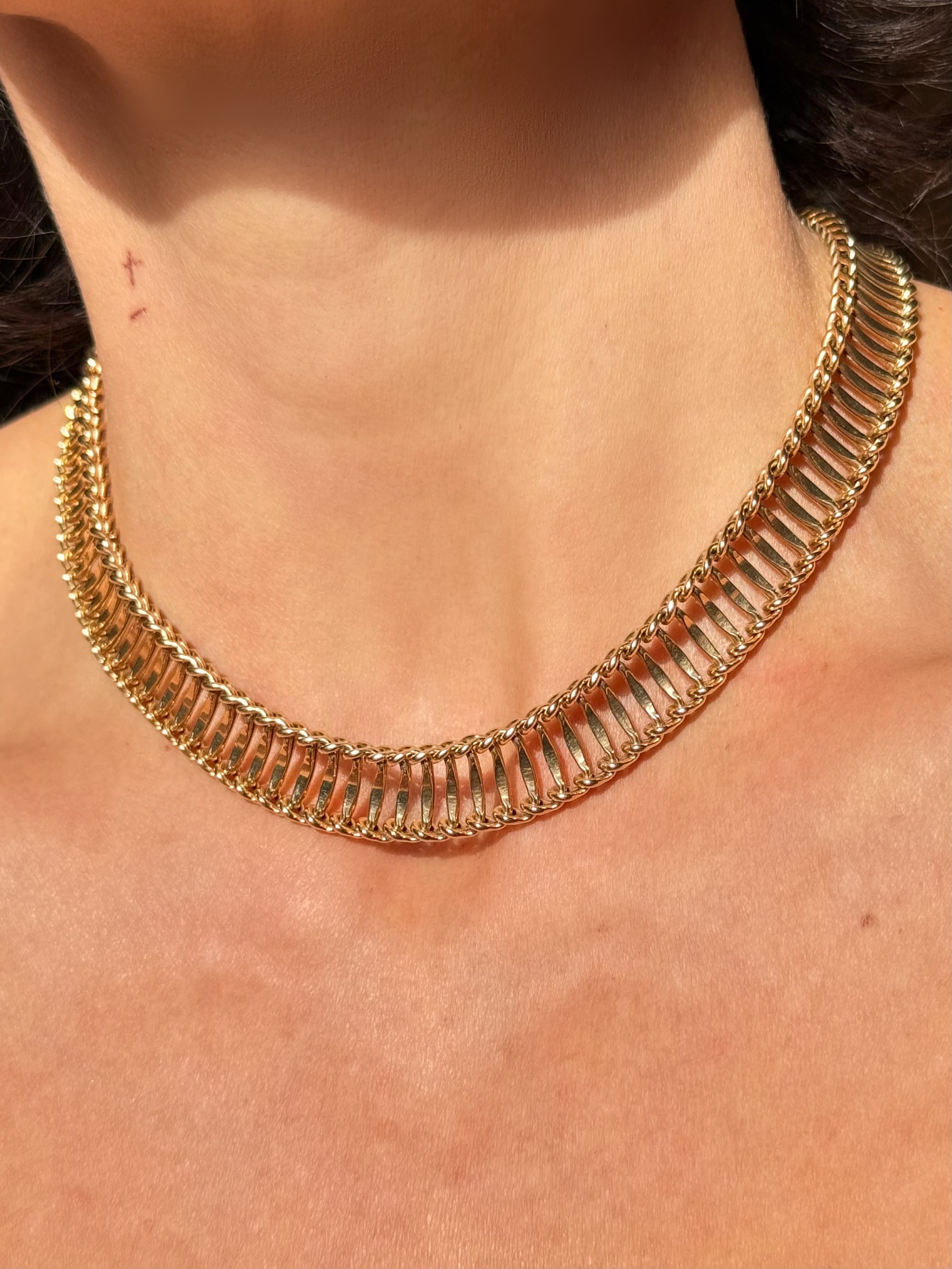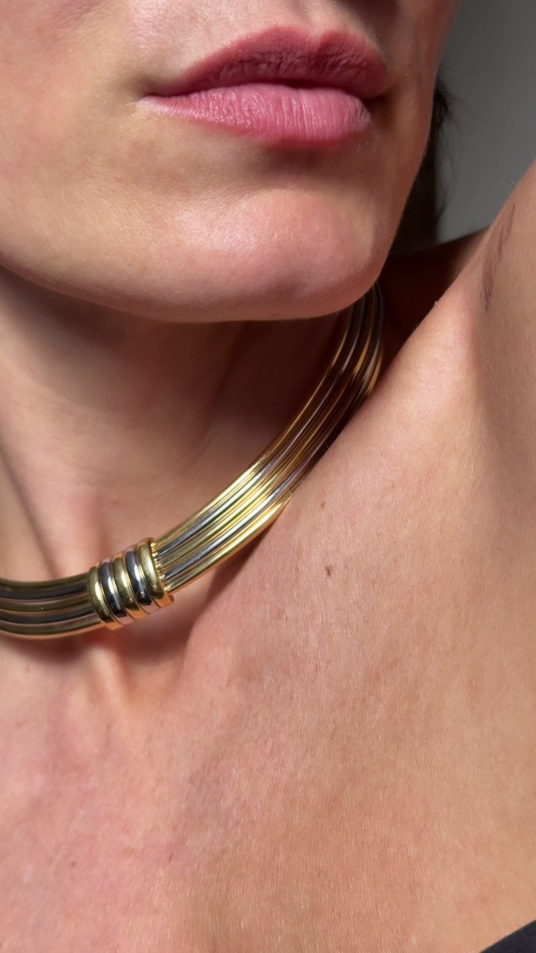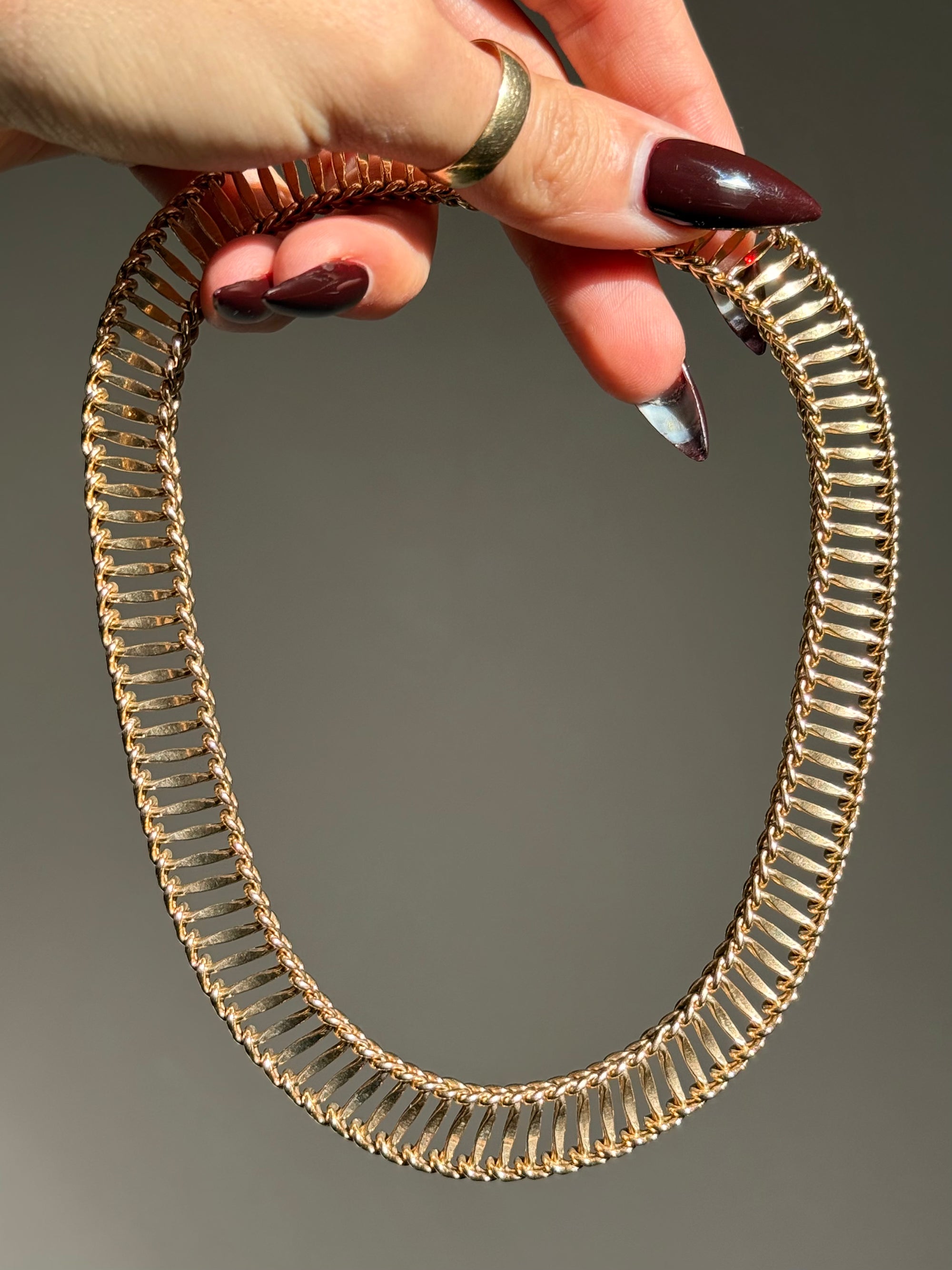 AT THE COPA, COPACABANA // 1970’s GOLD TORQUE COLLAR WITH FLAMINGO