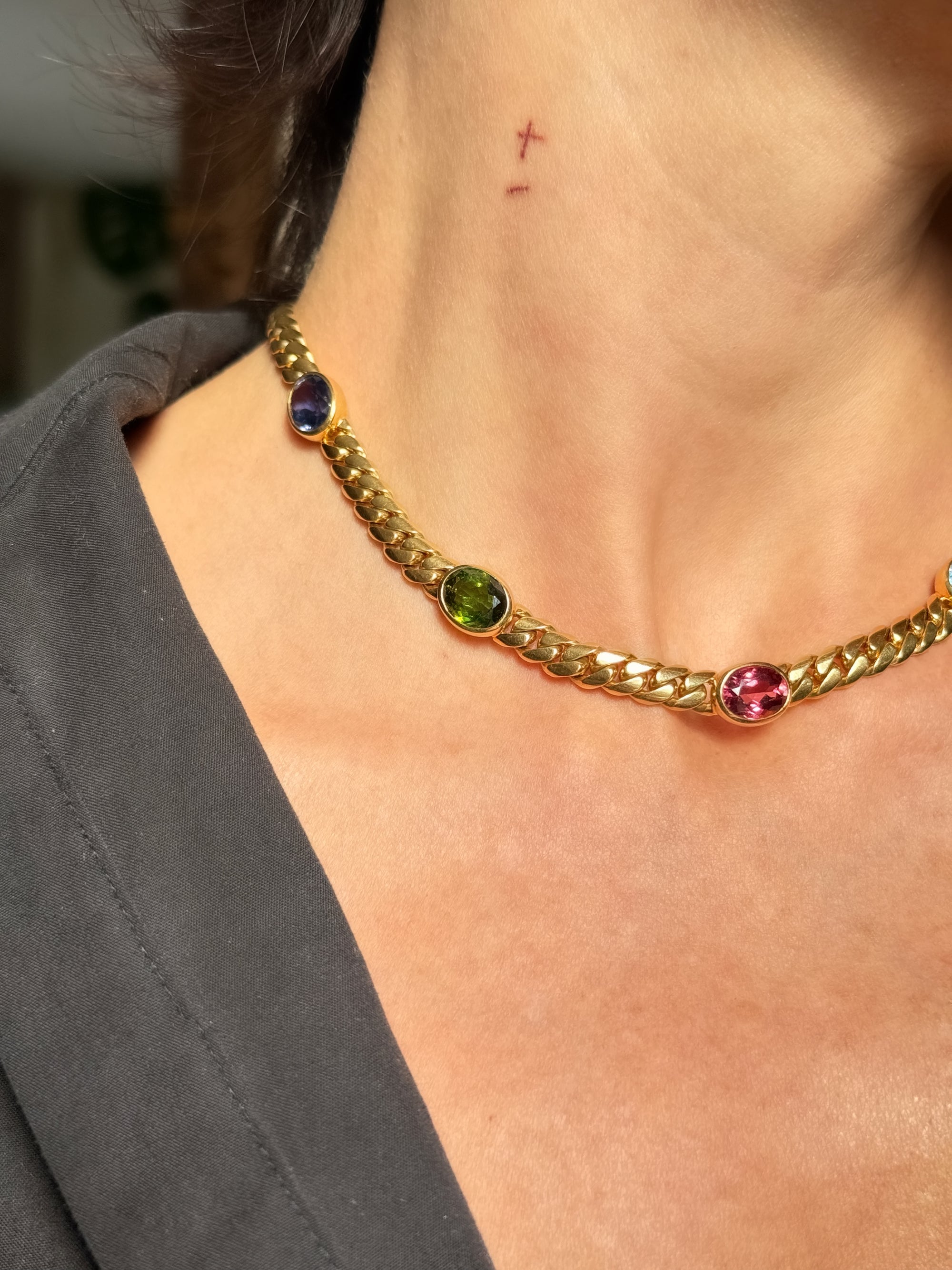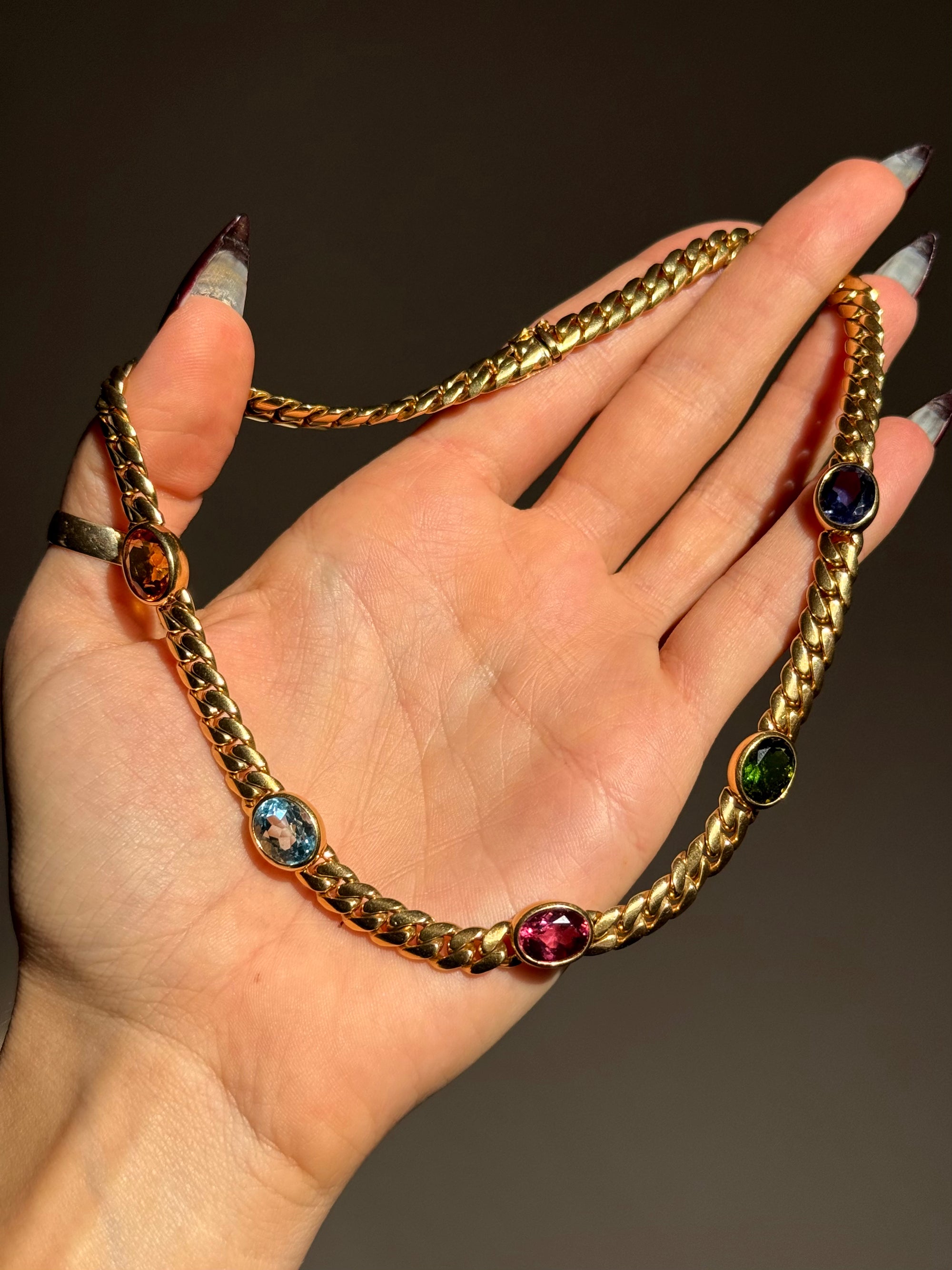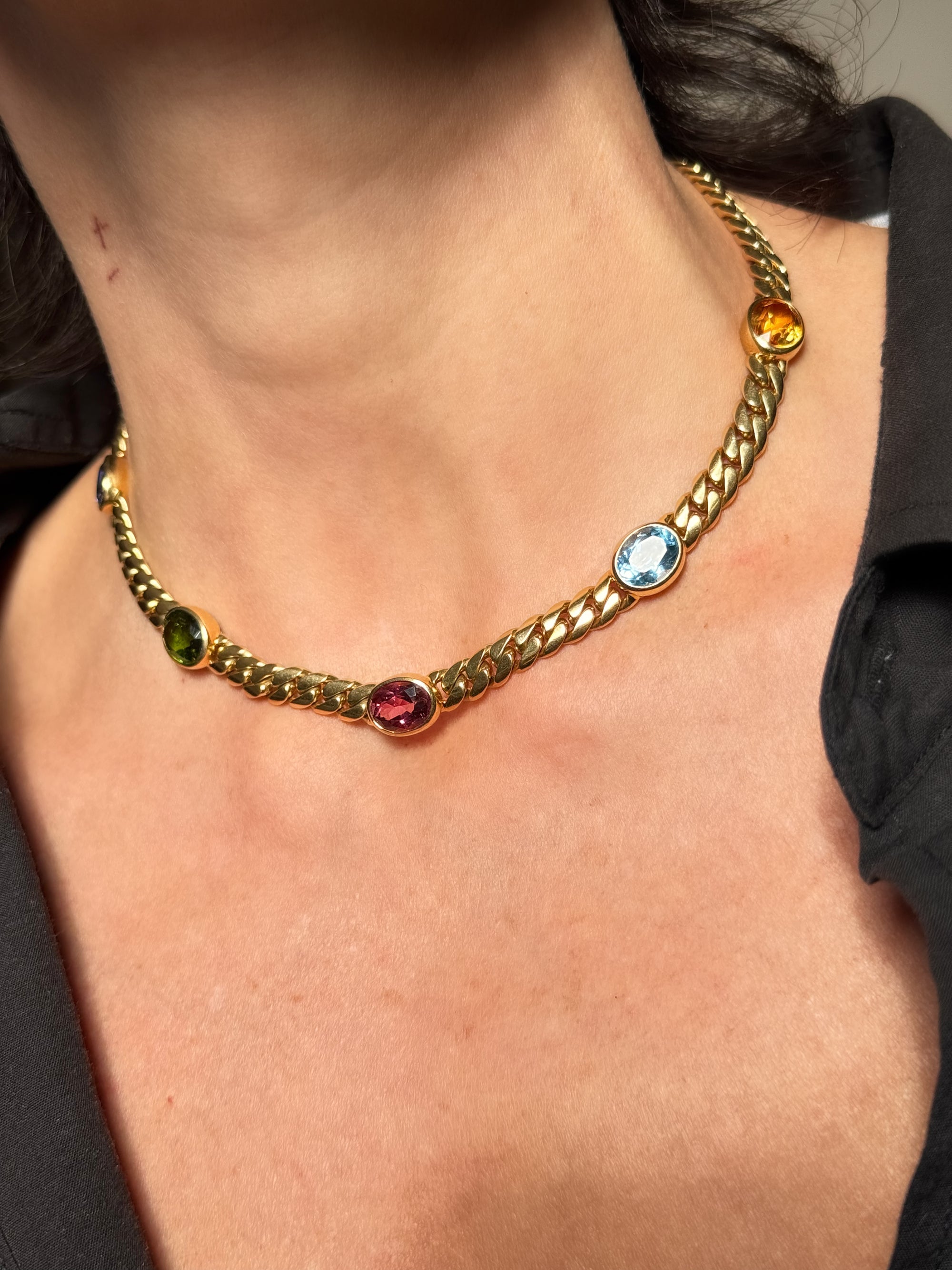 OF THE SUMMER RAIN SOFT AGAINST THE WILDFLOWER PETALS // MULTI GEM SET CUBAN LINK CHAIN