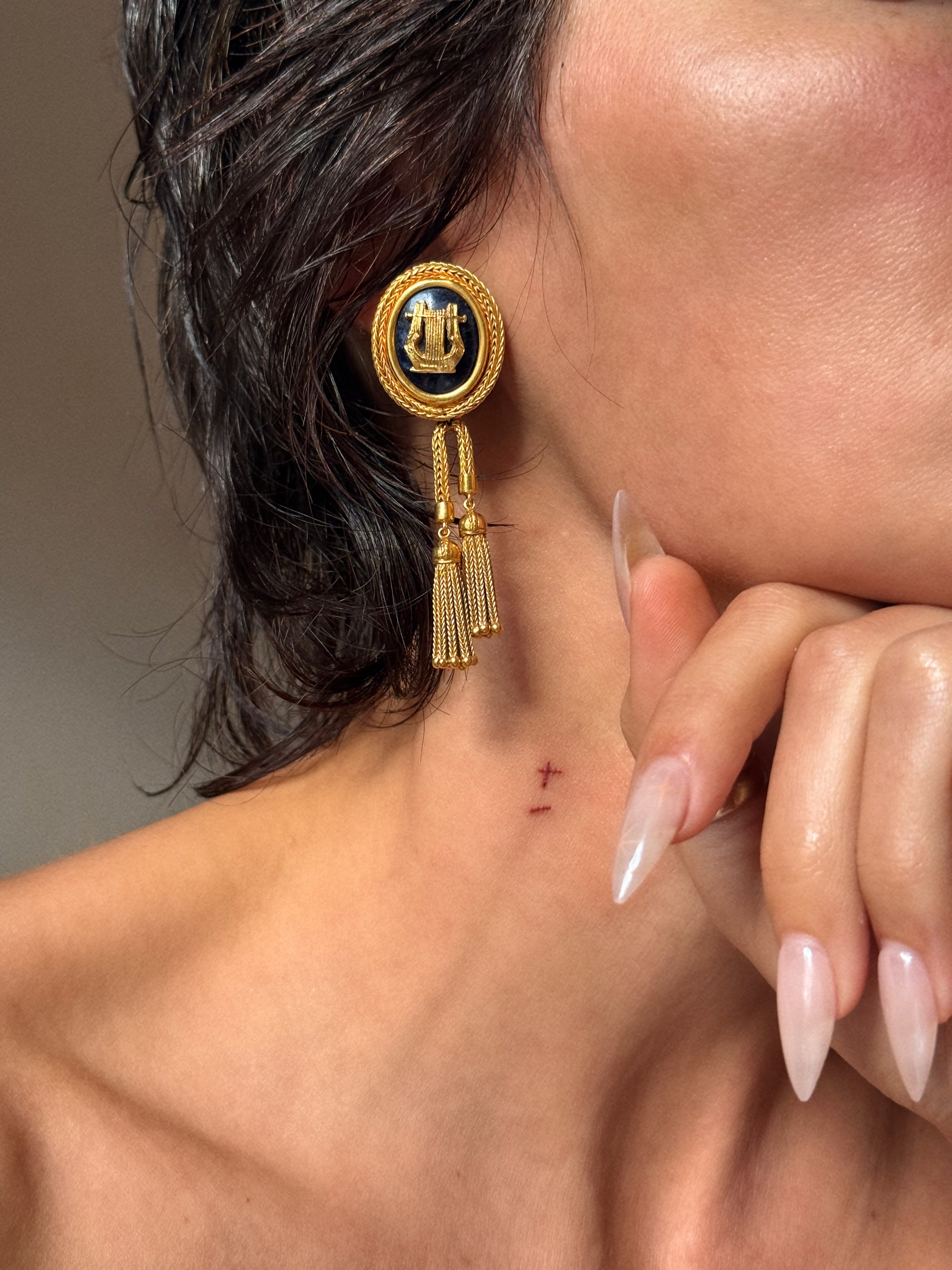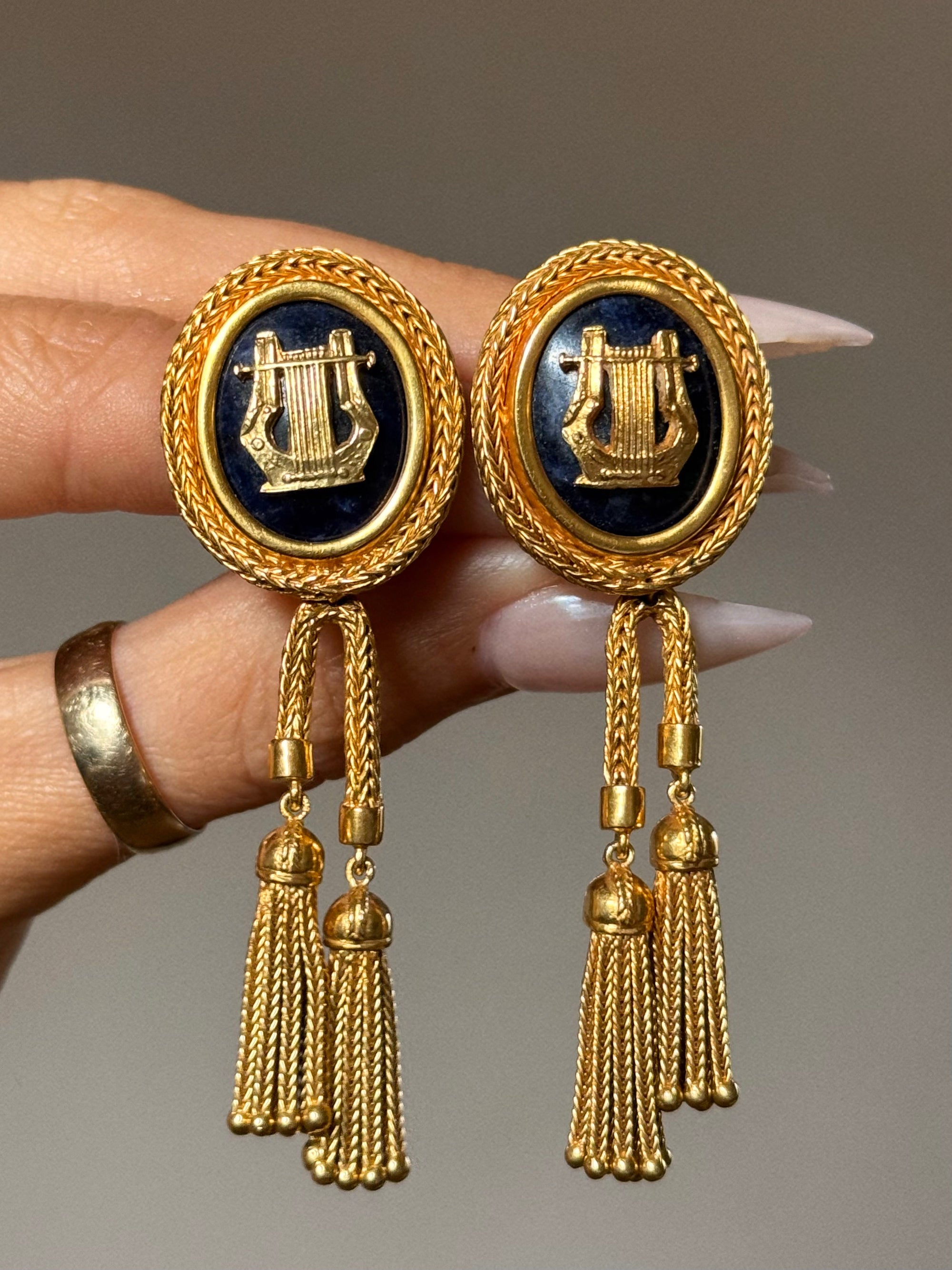 DANCE, DANCE NO MATTER WHAT BECAUSE THE MUSIC IS ALREADY INSIDE OF YOU // VINTAGE LAPIS LYRE AND TASSEL EARRINGS