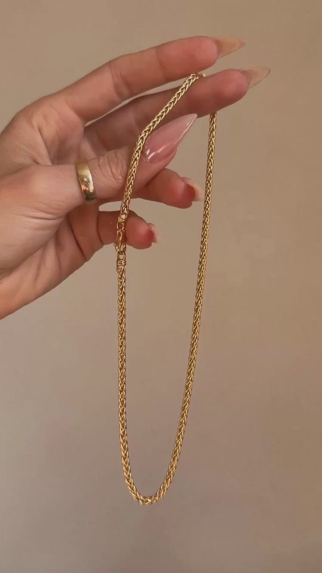 OF ROLLING FIELDS OF GOLDEN WHEAT AND YOUR HAIR CARESSING YOUR NECK THROUGH THE CAR WINDOW BREEZE // 18K GOLD WHEAT CHAIN