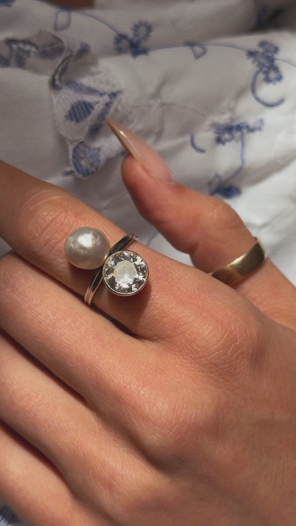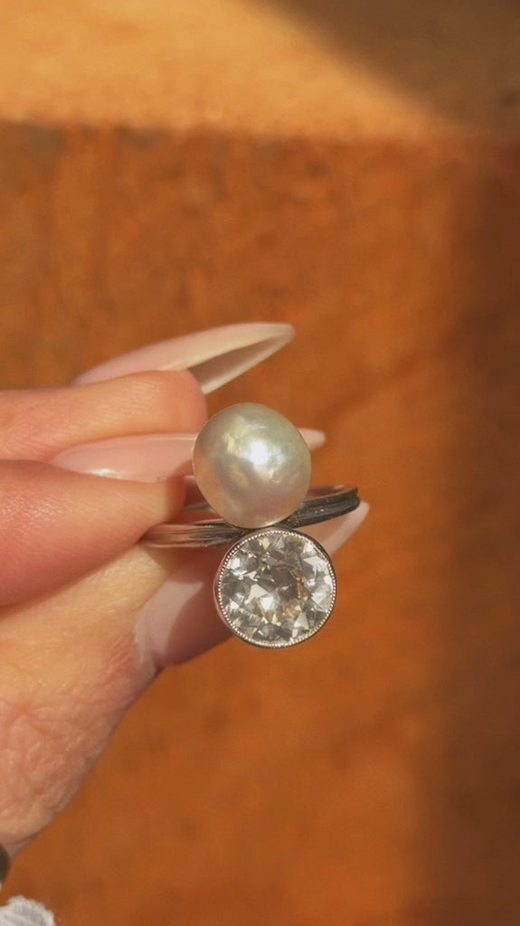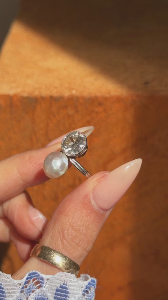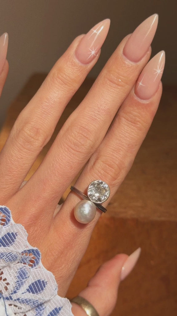 I BELIEVE THE SEA MADE THIS FOR ME SO THAT I COULD WATCH IT RISE AND FALL ON YOUR SKIN AS YOU DOZED BY THE ROCKS // ART DECO DIAMOND AND PEARL TOI ET MOI RING