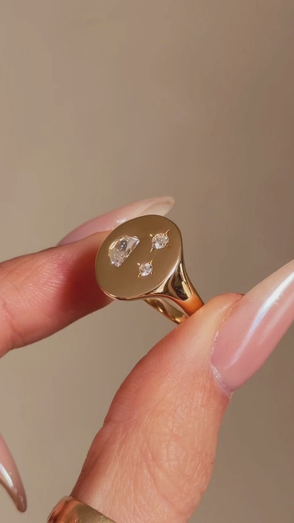 WHEN WE ARE APART, LOOK TO THE SKY AND KNOW I AM WITH YOU // MOON AND TWO STARS SIGENT RING
