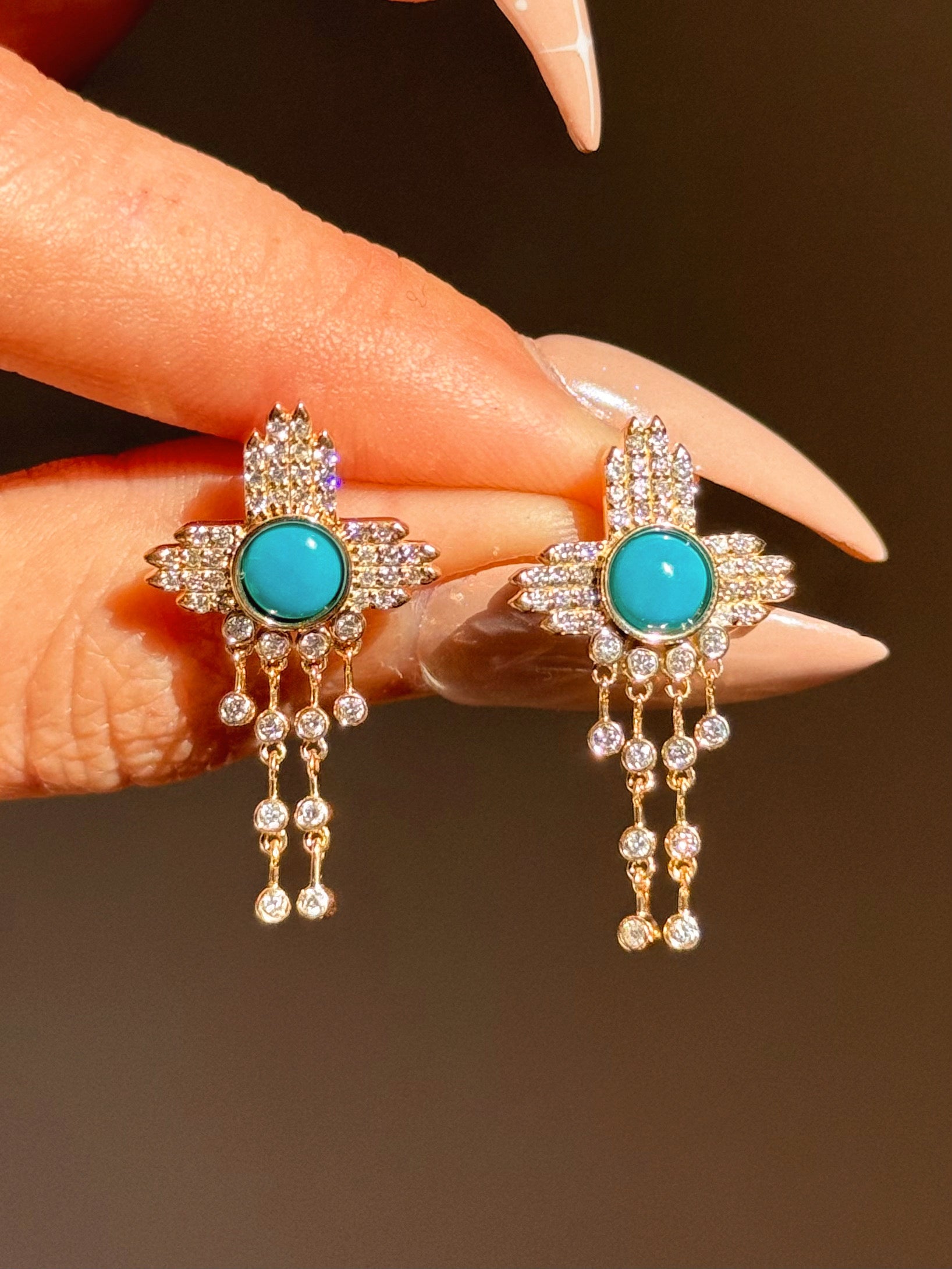 LISTEN TO THE WIND FROM THE FOUR CORNERS AND THE WIDE OPEN SKY ABOVE YOU AS IT TELLS YOU "YOU ARE EXACTLY WHERE YOU NEED TO BE" // TURQUOISE AND DIAMOND ZIA EARRINGS