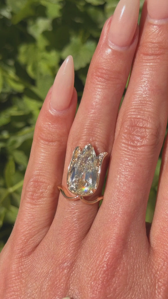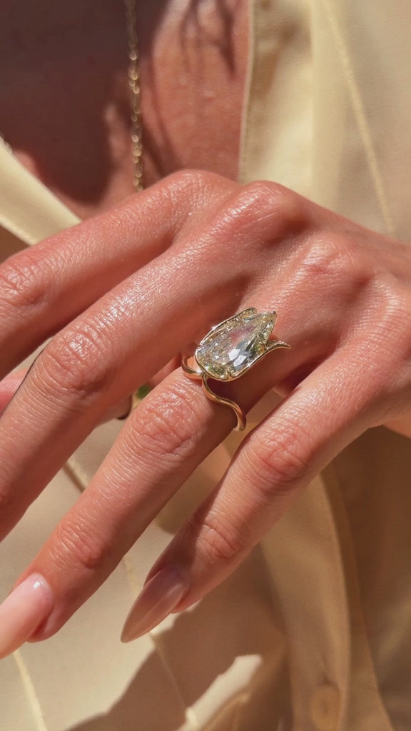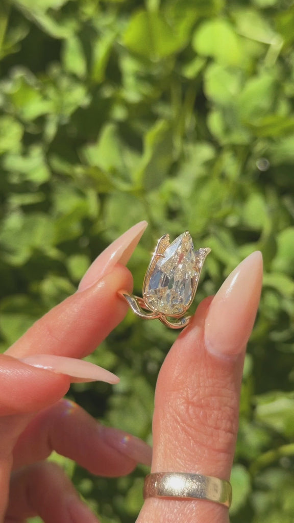 I RISE AND BLOOM AND BREAK THROUGH THE EARTH; IT HAS ALWAYS BEEN WHO I AM // 4.96CT OLD PEAR CUT DIAMOND TULIP RING