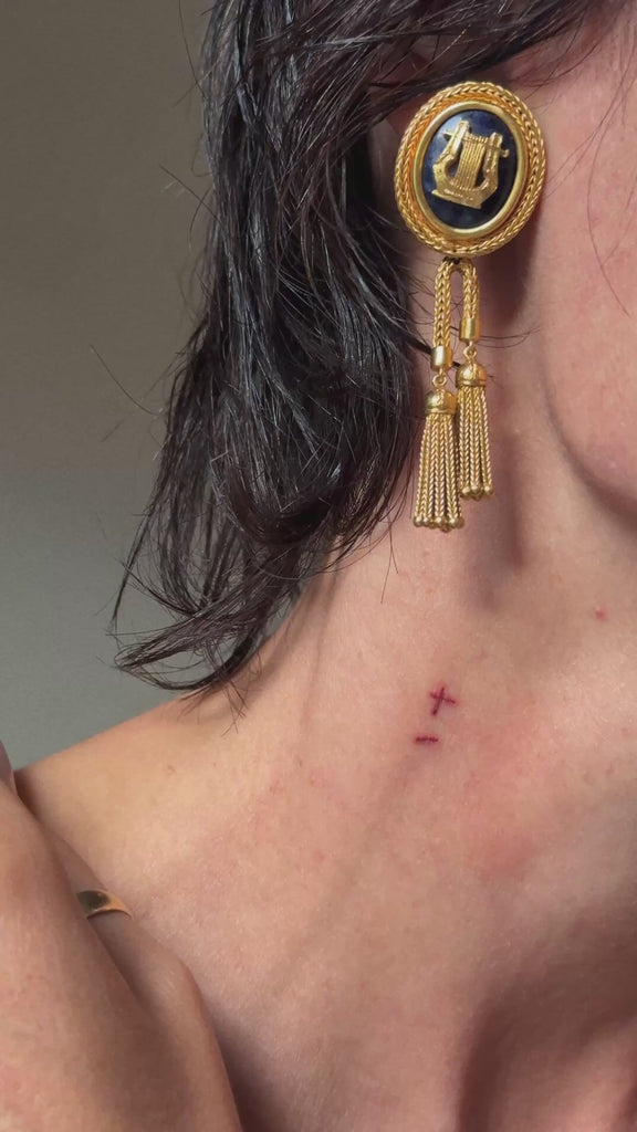 DANCE, DANCE NO MATTER WHAT BECAUSE THE MUSIC IS ALREADY INSIDE OF YOU // VINTAGE LAPIS LYRE AND TASSEL EARRINGS