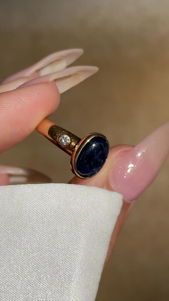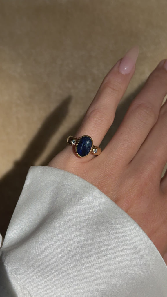 IN THE MIDNIGHT HOURS I FEEL WILD AND FREE // VINTAGE CABOCHON SAPPHIRE RING IN 18K GOLD