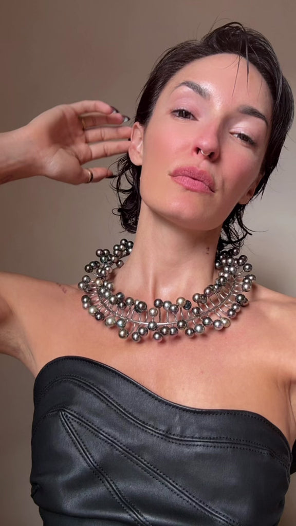 OF VENUS AS THE MOON LIGHTS UP THE DARK, UNDULATING WAVES // TAHITIAN PEARL AND SILVER COLLAR