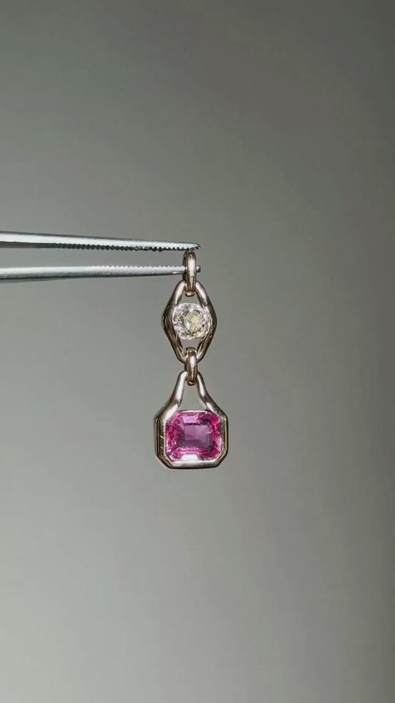 Materials - 18k Yellow Gold, One (1) Natural No Heat Pink Sapphire (1.61ct) & One (1) Old Mine Cut Diamond (0.63ct)