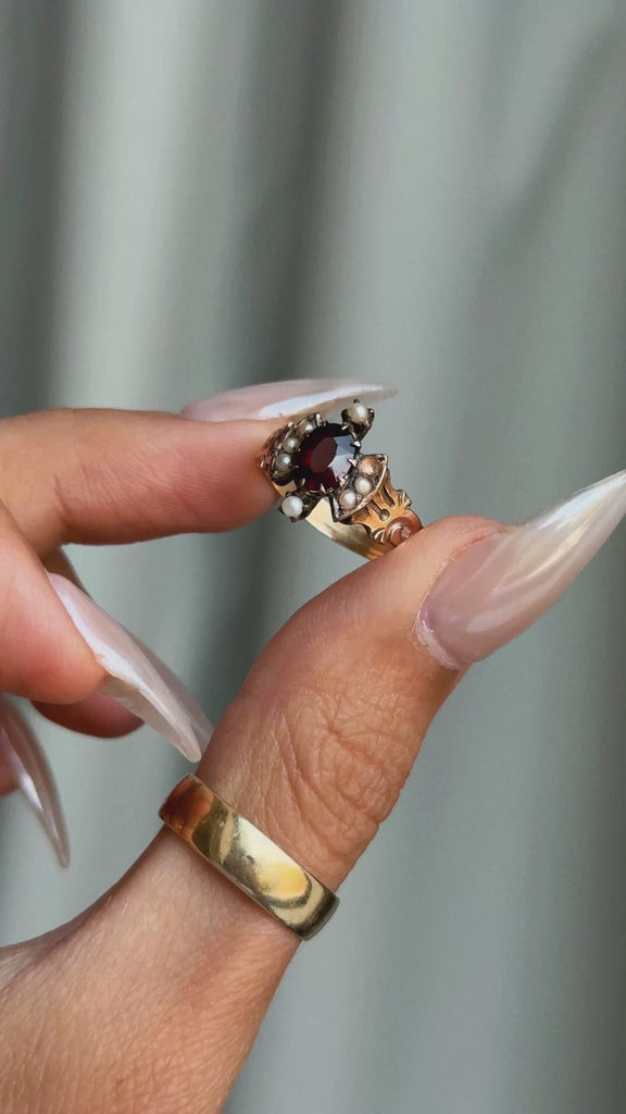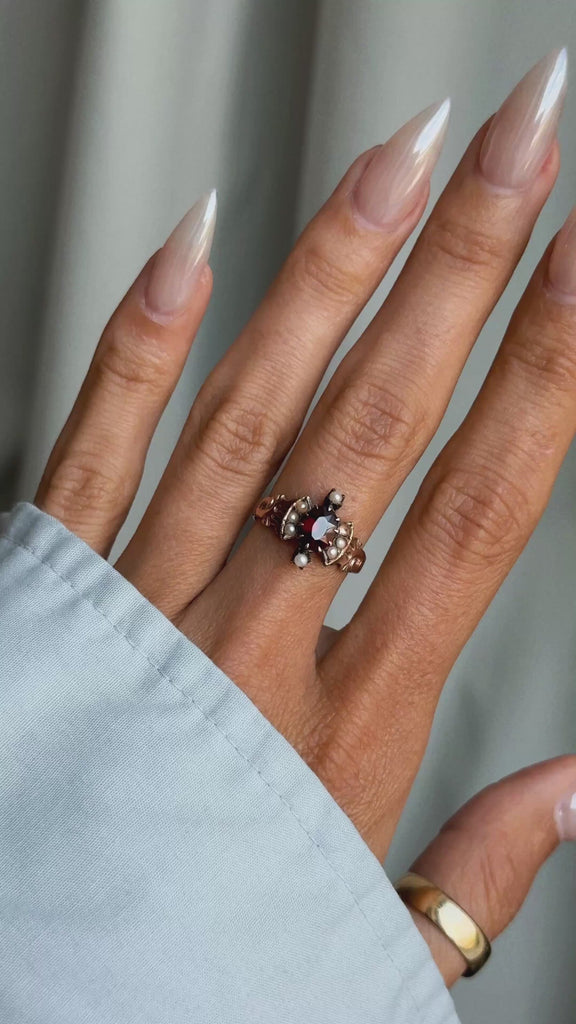 THEY WAITED ON THE BRIDGE FOR THE TIME WHEN THE BATS WOULD COME // VICTORIAN GARNET AND PEARL RING