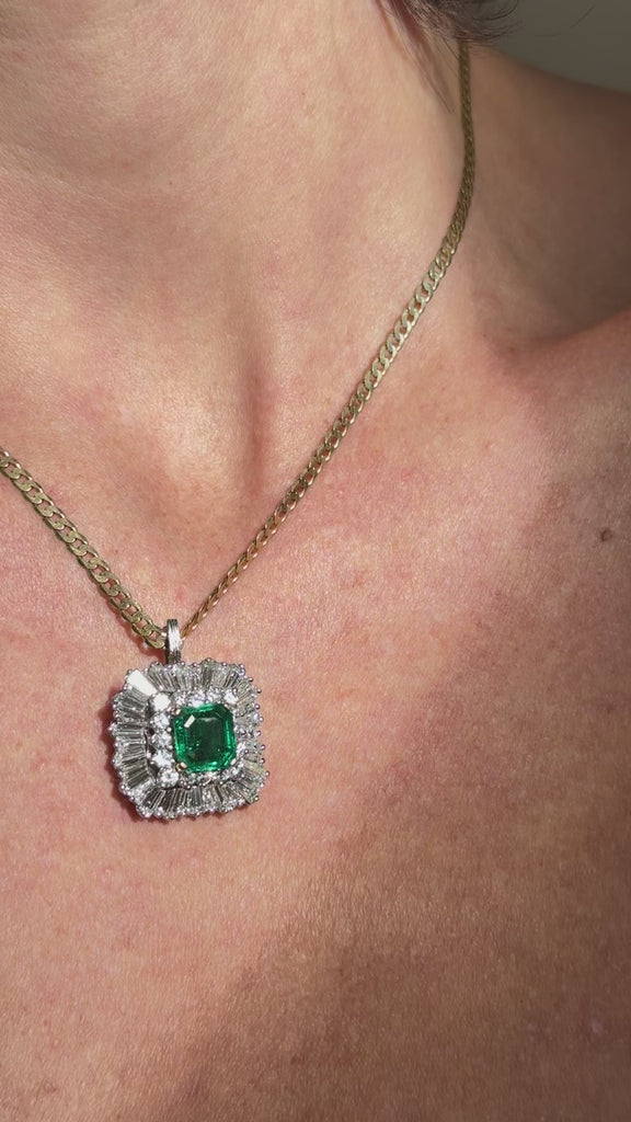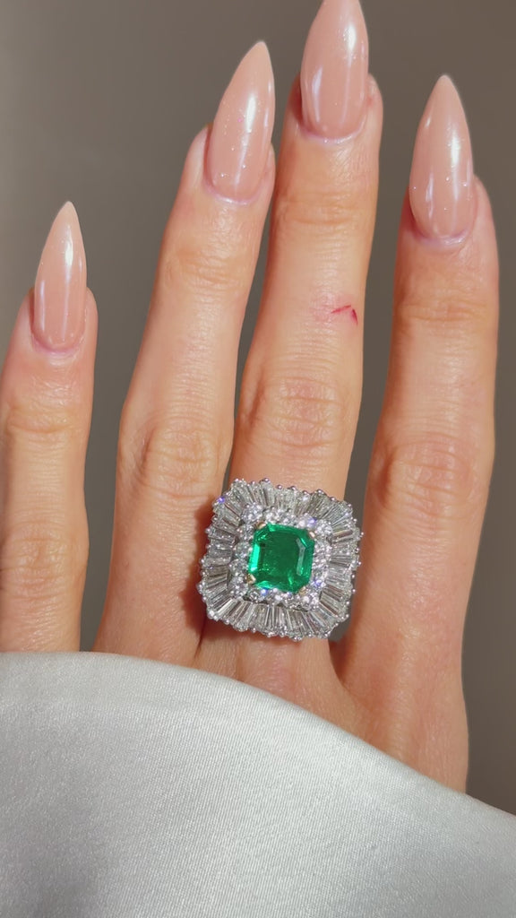 Materials - 18k Yellow Gold, Platinum, One (1) Emerald (1.70ct), Round Diamonds (0.96tcw F-G VVS-VS), Baguette Diamonds (1.69tcw F-G VVS-VS) GIA #5231696516