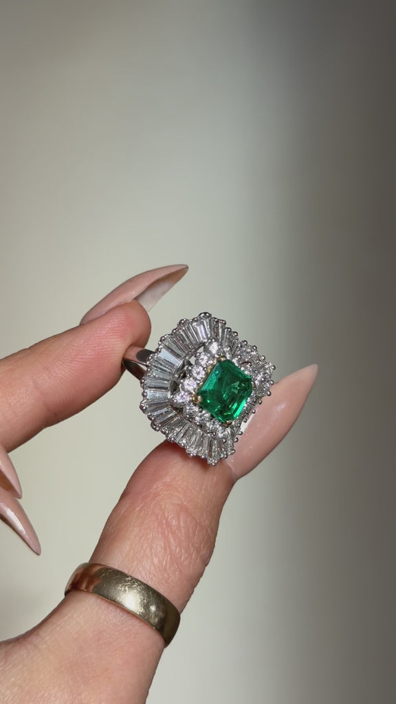 YOU MAY LOOK AT ME AND THINK YOU HAVE ME FIGURED OUT, BUT I ASSURE YOU, I AM FULL OF SURPRISES // 1950's EMERALD AND DIAMOND BALLERINA RING-DANT